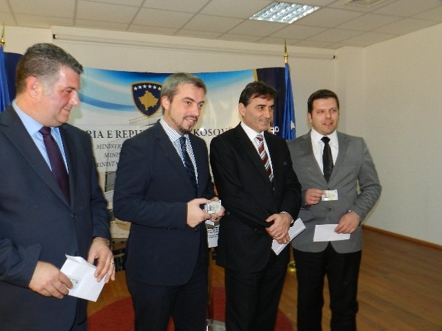 Kosova’da ilk biyometrik kimlik kartlarının verildiği törende bir ilk daha yaşanarak, Türkçe ibareler içeren kimlik kartlarının da dağıtımı yapıldı. İlk biyometerik kimlik kartlarının takdim edilmesi töreninde konuşan Kosova İçişleri Bakanı Bajram Rexhepi, biyometrik kimlik kartlarının basılması ile, Avrupa yolunda önemli adımın daha atıldığını belirtti. Vize muafiyeti kriterlerinden biri olan biyometrik kimlik kartlarının Kosovalı vatandaşlara önemli kolaylıklar sağlayacağını kaydeden Bakan Rexhepi, maliyeti 7 milyon 800 bin Euro olan kimlik kartlarının 3 yıl içinde eskileri ile değiştirileceğini söyledi. Arnavutluk, Karadağ gibi komşu ülkelerle bu kartlarla yolculuk yapılabileceğini kaydeden Bakan Rexhepi, 1 milyon 700 bin kartın basılacağını kaydetti.